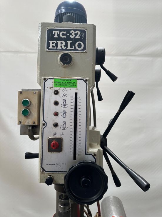 | Details | taladro Erlo TC 32,taladro de columna y cabezal con engranajes, velocidades del cabezal 93-1420 rpm,con subida y bajada mesa motorizada, , maquina en buen estado |