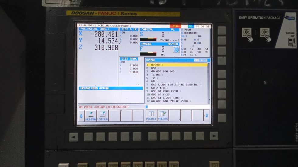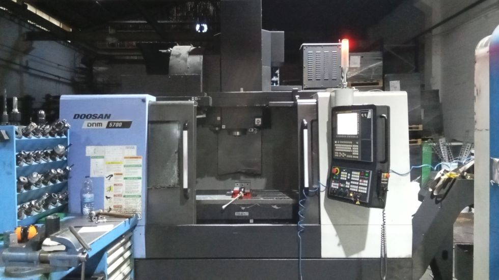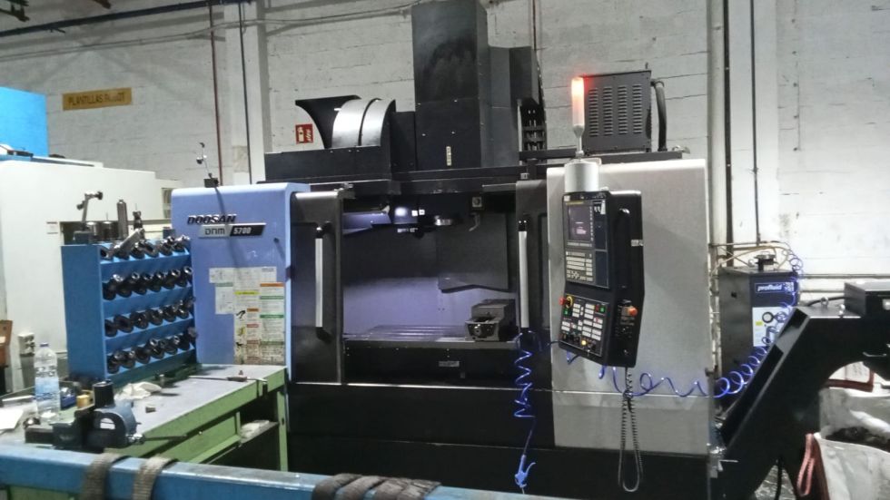 Centro de mecanizado DOOSAN Modelo DNM 5700 Año 2016 CNC FANUC Recorrido eje X 1.050 mm Recorrido eje Y 570 mm Recorrido eje Z 510 mm Avances rápidos X / Y /Z 36 / 36 / 30 m/min Avances de trabajo 15000 mm/min Tamaño de la mesa 1300 x 570 mm Capacidad de carga de la mesa 1000 Kg Velocidad del husillo 8000 rpm Numero de herramientas 30 / BT40 Dimensiones de la maquina 2413 x 3110 x 2985 mm Peso maquina 6500 Kg