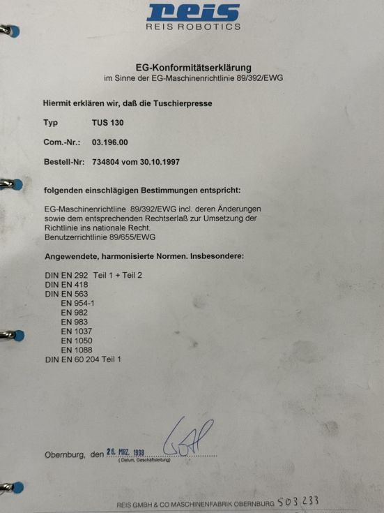| Customer reference | Hydraulic press REIS - TUS 130 - 200 |
