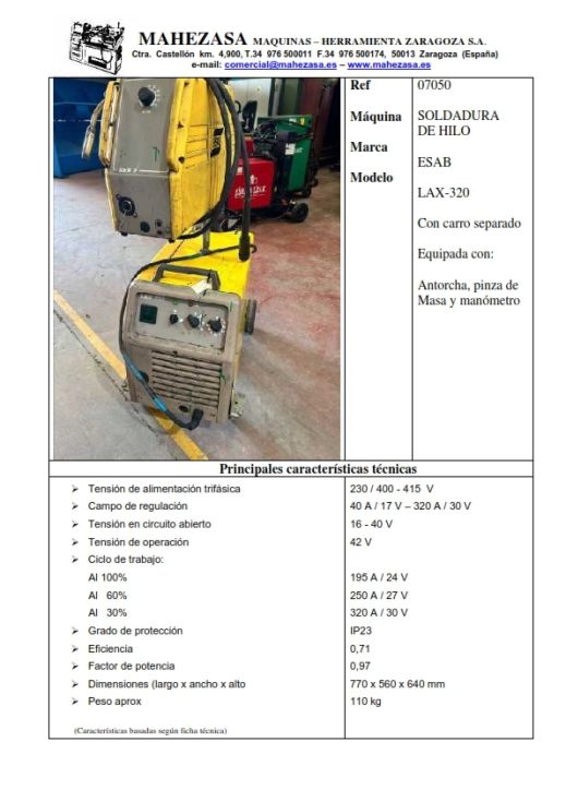 | Brand | Esab (Suecia) |