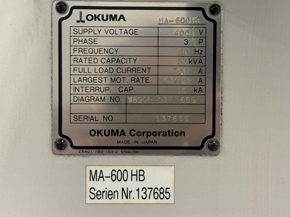 | Name | Horizontal machining center (HMC) Okuma - MA-600 HB SPACE CENTER |