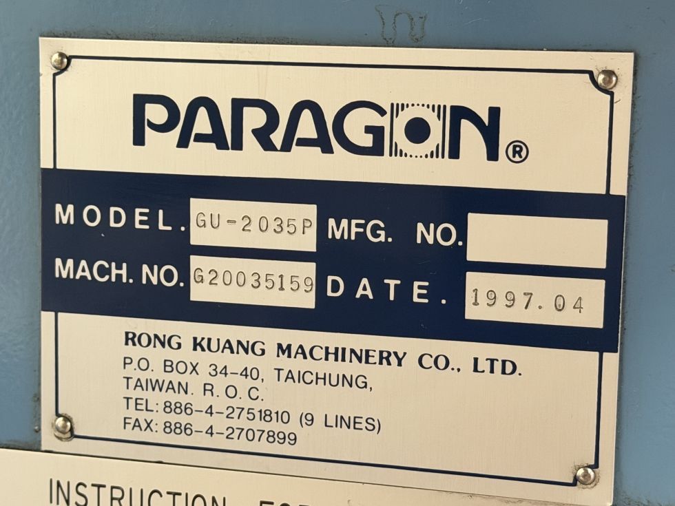 Customer referenceCylindrical grinder Paragon - GU-2035P MACH-ID 9191 Make: Paragon Type: GU-2035P Year: 1997