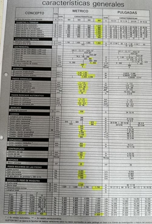 Automáticos: 34 métricos, 54 Whitworth, 20 modulares, 27 diámetro pitch Avances: Motor principal: Componentes incluidos: -