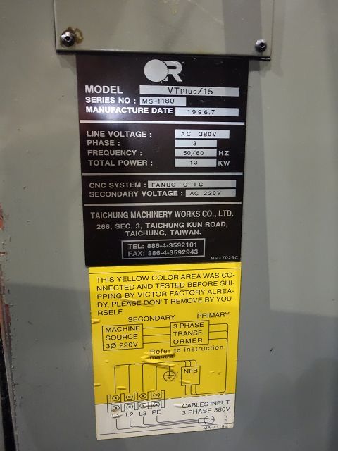 | Name | CNC Lathe Victor Taichung - VT Plus 15 |