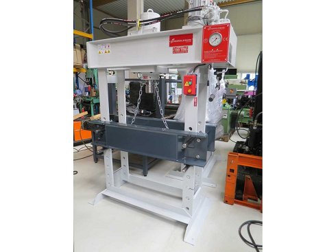 La prensa hidráulica de alta calidad puede operarse tanto manualmente como motorizada >br>.>br> cilindros puede moverse lateralmente.>br>válvula de seguridad para la posición del extremo del cilindro.>br>CE>br>presión 100 t>br>recorrido 400 mm>br> paso entre los postes longitudinales o laterales. Potencia del motor 1010 x 300 mm>br> 4,0 kW>br>litros Capacidad de instalación 11,0 l>br> altura de instalación 900 mm>br> superficie de mesa 1010 x 560 mm>br> velocidad de 4,8 mm>br> a 7,5 mm>br> peso de la máquina aprox. 0,9 t>br>Dimensiones L x Ancho x Alto 1550 x 900 x 245 mm |