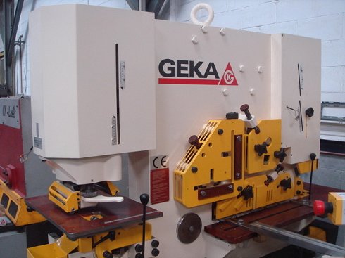 The universal cutting cutting shears Geka HYD-80/S, is a perfect machine for the work in workshops of light locksmithing and metallic structure. It is thought and built to take advantage of to the maximum each corner of work, as it has in a same machine three stations of cutting being possible to work in two places at the same time: cutting of llanta, cutting of bar maciza, cutting of angle and profile, punzonado and escantonado.
