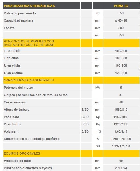 Punzonadora hidráulica puma-hyd 55