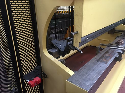 Fuerza de trabajo: 125t Longitud de plegado: 3.050mm Paso entre montantes: 2.600mm Cuello de cisne: 400mm Recorrido: 150mm Abertura: 350mm Ancho de mesa: 150mm Dimensiones:3.220×1.600×2.445 mm