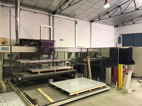 | Details | Punzonadora Danobat con Cizalla PZ1631 Punzonadora Danobat con Cizalla PZ1631 completa con carga/descarga autoindex, aspiración y reposición. Punzonadora Danobat PZ1361 con cizallaCaracterísticas técnicas: Recorridos de carros: X3000 - Y1500mm Máximo formato: X3000-Y1500mm Cizalla: 800x1500mm con regulación Potencia: 30kva Aire: PZ 100 Carga 250 N/min Peso: 16t