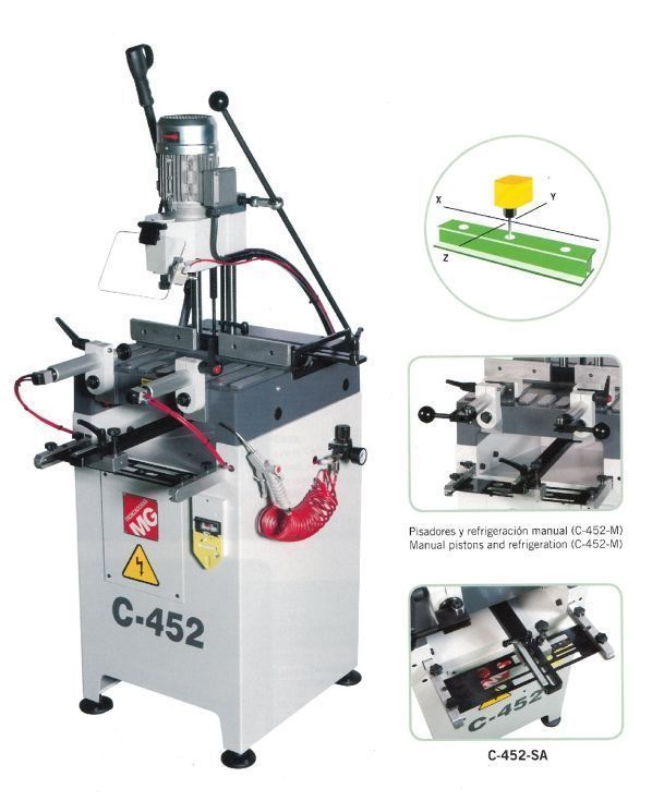 | Detalls | Vendo nueva a estrenar, Fresadora - Copiadora para aluminio "MG" modelo C-452-M, con motor de 0,5 CV, Capacidad 230x110 mm, fresadora copiadora de alto rendimiento para realizar alojamientos de cerraduras, bisagras y toda clase de ranurados y fresados mediante plantilla o topes reguladores, en toda clase de perfiles de aluminio, plastico, PVC, etc. Dimensiones 450x320 mm, Recorrido longitudinal 230 mm, Recorrido transversal 110 mm, Desplazamiento vertical 145 mm, Velocidad de corte 9600 r.p.m., diámetro mango fresa de 8 mm. |