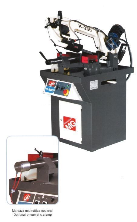| Detalls | Vendo nueva a estrenar, Sierra de cinta manual robusta para corte de hierro y acero entre -0º y +60º derecha, con bajada hidráulica marca MG modelo K-280-M-BH, Con normas CE. Equipo de refrigeración. Con dos velocidades de corte (Opcionalmente monofásica con una sola velocidad) Manómetro de tensión de cinta. Con mordaza de apriete rápido. (Opcionalmente la mordaza puede ser neumática) Guía cinta con rodamientos y pastillas de widia regulables. Dimensiones de la cinta 2450x27x0,9 mm, Motor de 2 velocidades de 1,1 / 1,5 HP Velocidad de corte 40-80 mt/min. Altura de trabajo 985 mm, Bomba de refrigeración 0,16 HP, Peso 285 kg., Dimensiones exteriores 1400x850x1750 mm, Nivel de ruido 70 Db, Capacidad de corte redondos a 90º de 200 mm diámetro. Capacidad de corte perfiles rectangulares a 90º de 280x180 mm, Capacidad de corte cuadrados a 90º de 200x200 mm, Capacidad de corte redondos a 45º derecha de 180 mm diámetro. Capacidad de corte perfiles rectangulares a 45º derecha de 180x160 mm, Capacidad de corte cuadrados a 45º derecha 160x160 mm, Capacidad de corte redondos a 60º derecha 100 mm diámetro. Capacidad de corte perfiles rectangulares a 60º derecha 90x100 mm, Capacidad de corte cuadrados a 60º derecha 90x90 mm |