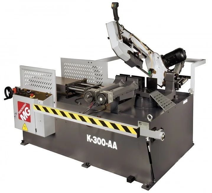 | Detalls | Vendo nueva a estrenar, Sierra de cinta para metal, automática con alimentador "MG" modelo K-300-AA, Sierra de accionamiento oleoneumática especialmente diseñada para cortar tubos, perfiles y secciones de todo tipo de materiales férricos y aleaciones ligeras, con alimentación automática de barras y ejecución del corte en automático y manual., Con giro a 60º, Mäxima capacidad de corte perfiles de 300x230 mm, Dimensiones de la cinta de 2750x27x0,9 mm. Motor de 2 velocidades 0,5 / 1,2 HP, Velocidad de corte 35-70 mts./min. Altura de trabajo 820 mm, Bomba de taladrina de 0,16 HP, Peso 660 kg. Dimensiones exteriiores 2200x2100x1900 mm, Capacidad de corte a 90º redondos de 240 mm diámetro. Capacidad de corte a 90º perfiles rectangulares de 300x230 mm, Capacidad de corte a 90º cuadrados de 220x220 mm, Capacidad de corte a 45º redondos 200 mm diámetro. Capacidad de corte perfiles rectangulares a 45º de 190x220 mm, Capacidad de corte a 45º cuadrados 190x190 mm, Capacidad de corte a 60º redondos de 110 mm diámetro. Capacida de corte a 60º perfiles rectangulares de 110x140 mm. Capacidad de corte a 60º cuadrados de 100x100 mm, Capacidad de arrastre de alimentador 600 kg. |