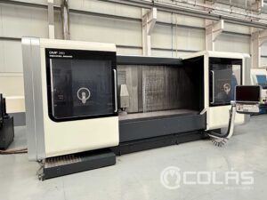| Detalls | Fabricante DMG-MORI Modelo DMF 260 Año 2011 CNC SIEMENS SINUMERIC 840D Mesa Superficie de la mesa 2.900 x 700 mm. Peso máximo sobre mesa 2.150 kg. Recorridos y avances Longitudinal (Eje X) 2.600 mm Transversal (Eje Y) 700 mm Vertical (Eje Z) 700 mm Avance rápido de los ejes (X,Y,Z) 40 m/min Avance de trabajo de los ejes (X,Y,Z) 40 m/min Aceleración de los ejes 4 m/s2 Cabezal Revoluciones 14.000 mm/min Cono cabezal SK 40 DIN 69872 Potencia motor principal 18,4 / 14 kW Cargador automático de herramientas Nº Herramientas cargador 30 Longitud máxima de herramienta 300 mm Peso máximo herramienta 6 kg. Diámetro máximo herramienta con posiciones adyacentes libres 130 mm Diámetro máximo herramienta sin posiciones adyacentes libres 80 mm Equipamiento Refrigeración 40 Bar / 600 l. INCLUDO Evacuador de viruta longitudinal INCLUDO Pistola de limpieza taladrina INCLUDO Volante portátil INCLUDO Sistema de medición directa INCLUDO Horas máquina Horas máquina encendida 18.859 h Horas de trabajo de cabezal 5.666 h Otros Potencia total instalada 55 kVA Dimensiones máquina (Largo x ancho x alto) 6.000 x 3.900 x 3.100 mm Peso de la máquina 14.520 kg. |
