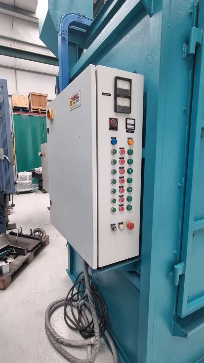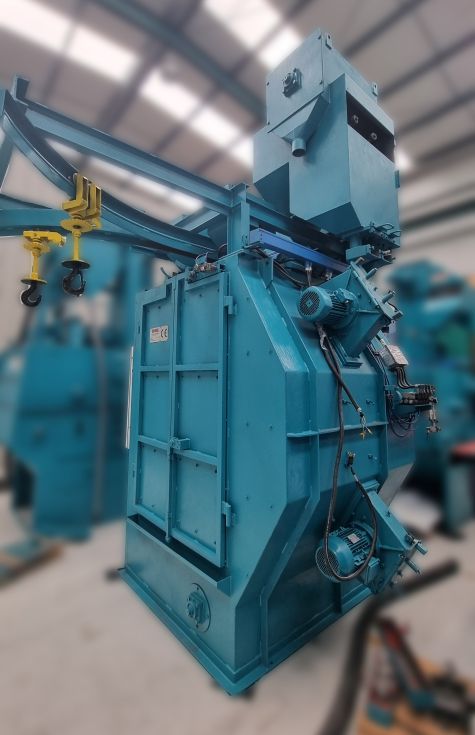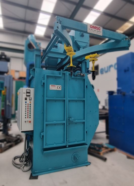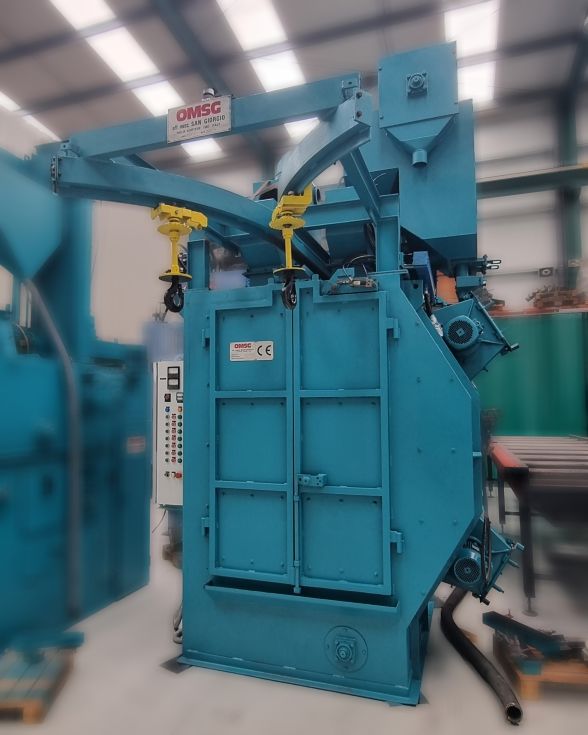 | Detalls | Granalladora para el tratamiento de la superficie de piezas colgadas de un gancho para una mayor exposición por el movimiento de rotación y traslación del gancho.