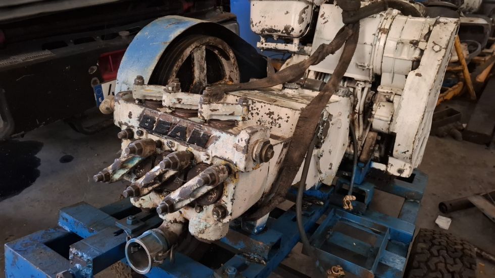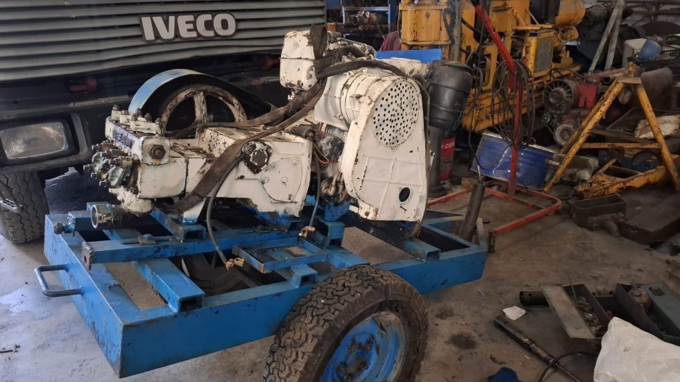 | Detalles | Bomba de Agua / Lodos, para Sondeos Bean Royal 535 / FMC con motor Diter de 2 cilindros, montada sobre chasis con ruedas. Buen estado. |