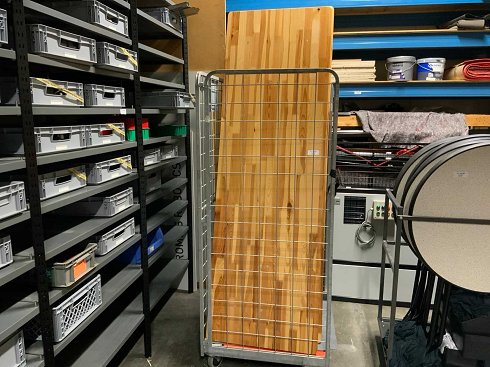 Incluye un carro de acero; Tabla de dimensiones: 220x70 cm; Dimensiones Bancos 220x25 cm