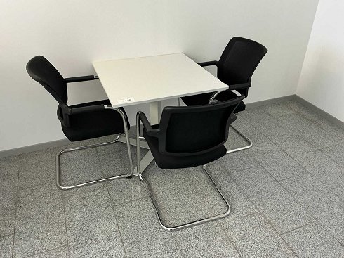 Contenido: 2 mesas de 95 x 95 x 73 cm, 3 x silla de oficina en voladizo negra
