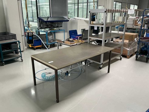 1 mesa de 200 x 100 x 78 cm, 1 estantería de carro de 140 x 60 x 182 cm (L/BH)