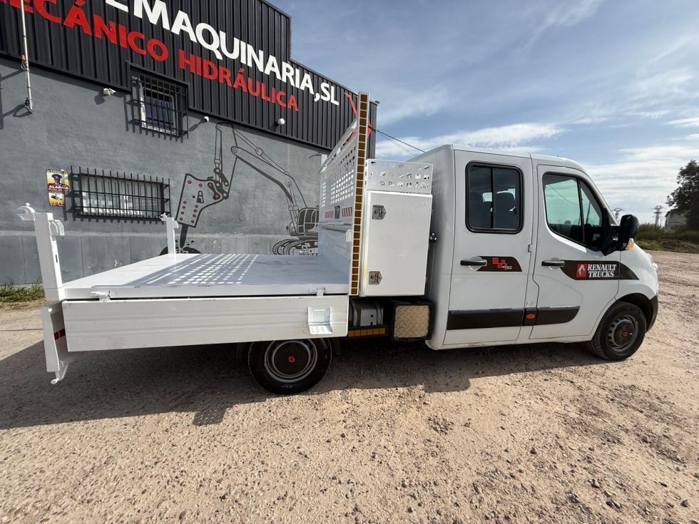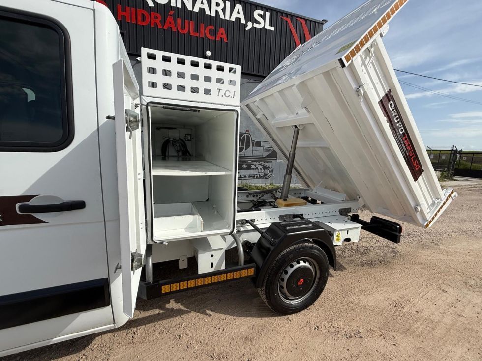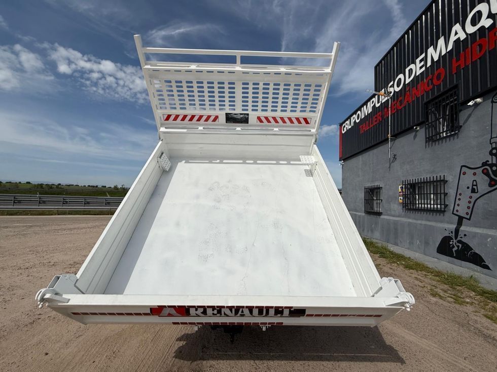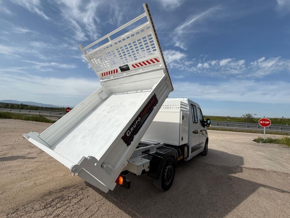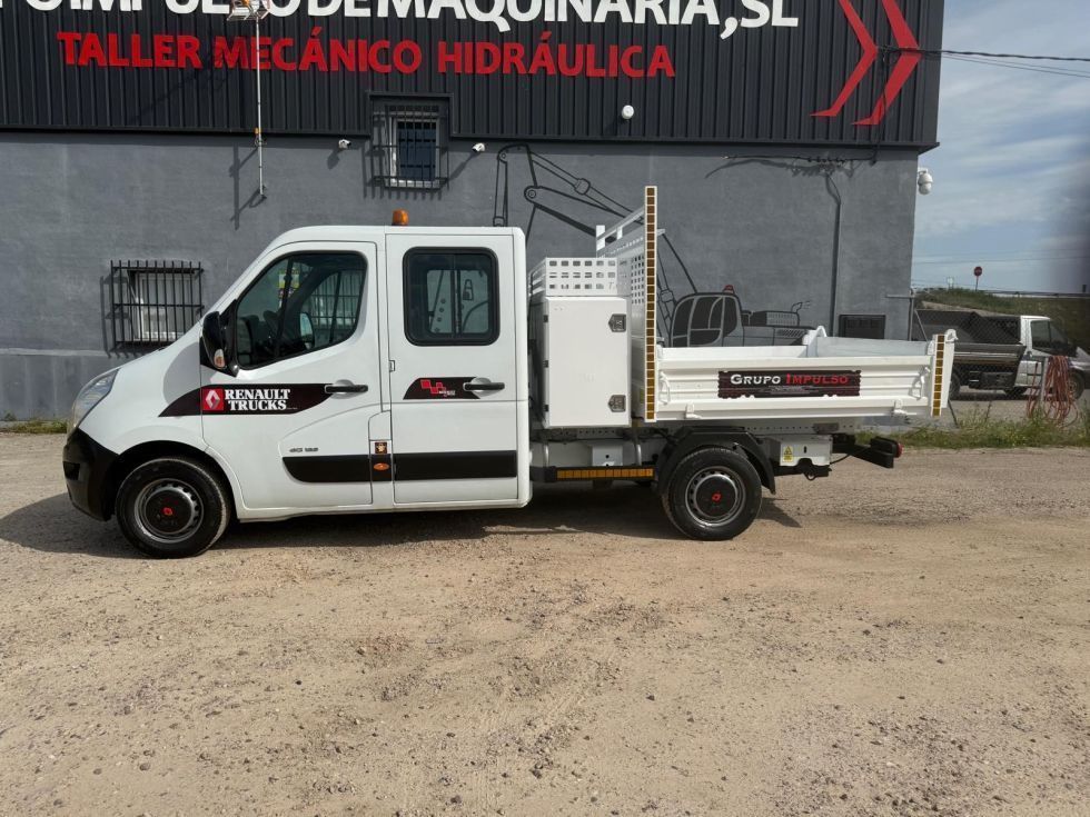 Camión basculante de 3.500 kgs con laterales abatibles, Renault Master DCI 125, motor diesel Euro 5, 125 cv, año 2014, 254.946 kms, cabina doble con siete plazas, cajón para herramientas, bomba de gasoil con depósito y bola de remolque homologada.