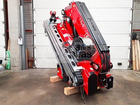 Grúa hidráulica F345RB.2.26 xe-dynamic de dos bielas, con seis extensiones hidráulicas y alcance de 16,55 m (26.55 m con jib) y carga en punta de 1.480 kg. (410 en la punta del jib) Con radiomando Scanreco de 8 funciones. La grúa incorpora además sistema PROLINK (que permite aumentar el ángulo de trabajo sobre la línea horizontal en 10-15º), distribuidor D900 y dispositivo compensador de caudal (FS), dispositivo XP (reserva de potencia), dispositivo ADC (control de la dinámica) y válvula regeneradora de aceite. Incluye juego de estabilizadores super extra extensibles hidráulicos a 6.650 mm. Cuenta con el brazo secundario y las prolongas decagonales. Fabricada en 2022, grúa nueva.