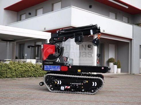 El multicargador sobre orugas Almac M-Crane 1030 es un equipo compacto y versátil que combina la funcionalidad de una grúa con la movilidad de un transportador sobre orugas. Diseñado para operar en terrenos difíciles y espacios reducidos, destaca por su capacidad de elevación de 990 kg, su plataforma autonivelante y su sistema estabilizador dinámico.
