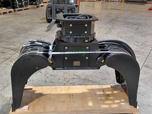 Satén negro mate para mini excavadoras de 8 a 12 t Ancho de apertura: 1.502 mm Ancho de la carcasa: 605 mm Altura total abierta sin transmisión: 833 mm Fuerza de sujeción: 26,2 kN a 300 bar Presión máxima de funcionamiento encendido/apagado: 300 bar Peso neto con función giratoria: 540 kg sin pastilla Número de motores hidráulicos: 2 Volumen mínimo de aceite encendido/desactivado: 25 l/min Volumen mínimo de vuelta del aceite: 15 l/min Tamaño de mangueras para cerrar/abrir: 1/2" Tamaño de la manguera giratoria: 1/2" Alcance de la entrega: -Instrucciones - Lista de repuestos - Declaración de conformidad CE