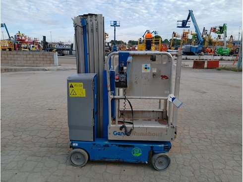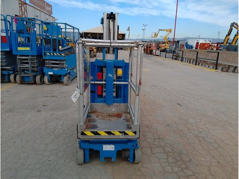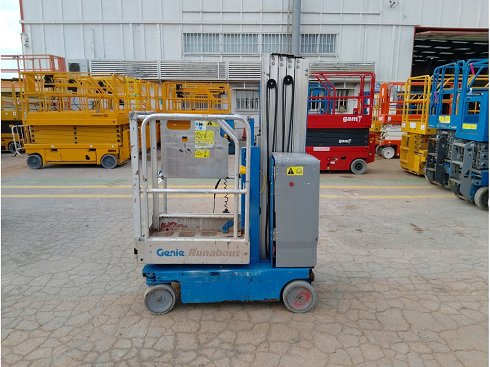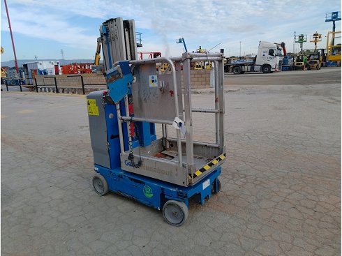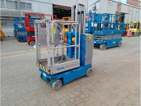 | Detalles | Plataforma unipersonal eléctrica GENIE GR-20. Altura de elevación 8 metros y capacidad de carga 159 Kg. Año de fabricación 2016. Caracteristicas