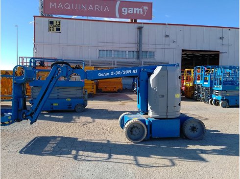 Plataforma articulada eléctrica GENIE Z-30/20N. Altura de elevación 11 metros y capacidad de carga 227 Kg. Año de fabricación 2016.
