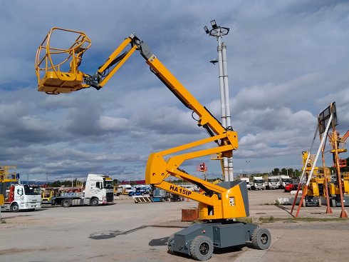 | Detalles | Plataforma articulada eléctrica HAULOTTE HA15IP. Altura de elevación 15 metros y capacidad de carga 230Kg. Año de fabricación 2011. Caracteristicas