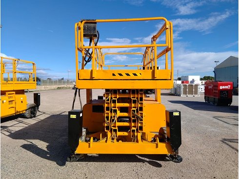Plataforma tijera diésel HAULOTTE H18SX. Altura de elevación 18 metros y capacidad de carga de 500 Kg. Año de fabricación 2012.