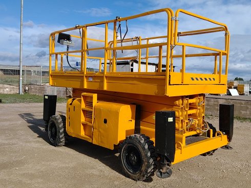 | Detalles | Plataforma tijera diésel HAULOTTE H15SX. Altura de elevación 15 metros y capacidad de carga 700 Kg. Año de fabricación 2012. Caracteristicas