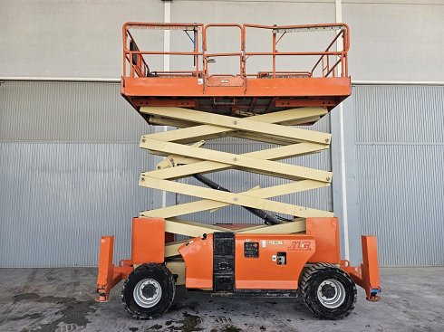 Plataforma tijera diésel JLG 4394RT. Altura de elevación 15 metros y capacidad de carga 565 Kg. Año de fabricación 2008.