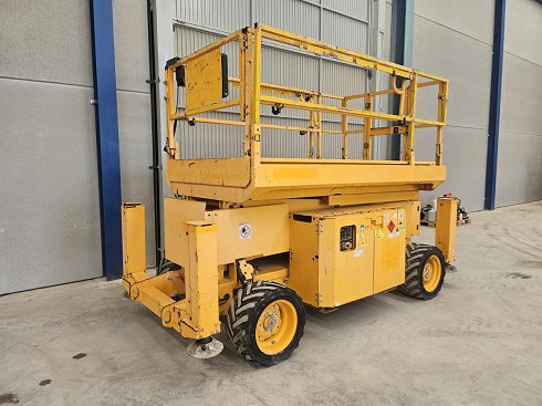 Plataforma tijera diésel GENIE GS-2669RT. Altura de elevación 12 metros y capacidad de carga 680 Kg. Año de fabricación 2012.