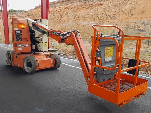 | Detalles | Plataforma articulada eléctrica JLG E300AP. Altura de elevación 11 metros y capacidad de carga 230 kg. Año de fabricación 2008. Caracteristicas