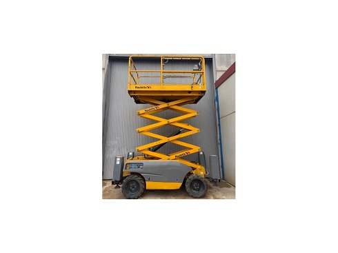 Plataforma tijera diésel HAULOTTE COMPACT 10DX. Altura de elevación 10 metros y capacidad de carga 565 Kg. Año de fabricación 2014.