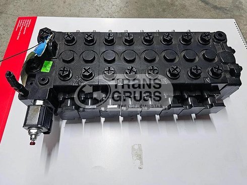 El distribuidor de una grúa consta de un conjunto de válvulas alineadas en bloques para un control de los movimientos de las diferentes partes de la grúa: elevación del brazo principal, articulación del brazo secundario, extensión de una prolonga, etc.
