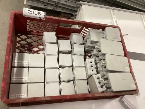 | Nombre | Jung con lote mixto, 4 tomas dobles para habitación húmeda y 15 interruptores para habitación húmeda, así como unas 15 cajas de conexiones |