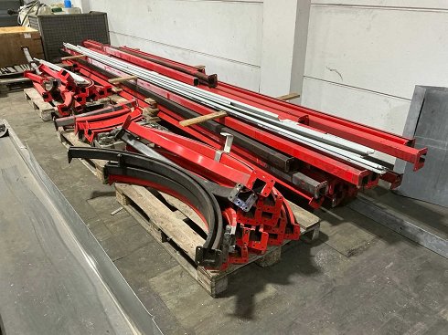 Con motores de accionamiento de 2 piezas; Sección transversal del tubo 60x60 mm, ancho de ranura guía 15 mm, raíl más largo aprox. 6000 mm, incluyendo varios arcos de medio punto |
