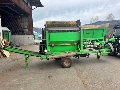 Planta de cribado de compost totalmente funcional con 2 tambores de criba. Un rendimiento de aproximadamente 15 m³/h, ¡ideal para pequeñas plantas de compostaje o obras de construcción! El tambor de criba se puede cambiar sin mucho esfuerzo. |