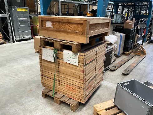 23 piezas de placas móviles para suelo Oktanorm de 100x100 cm Parcialmente con agujero 100x100cm aprox. 140 piezas de pies de tornillo aprox. 50 conectores de placa Usados