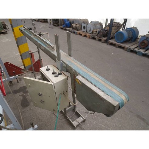 | Detalles | Cinta transportadora de 2 metros Largo: 2 m. ancho: 0,10 m, motor reductor: 0.18 KW (0.25 CV) y cuadro eléctrico con sistema de expulsión. |