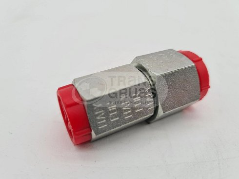 Conector hidráulico de alta precisión diseñado para adaptar sistemas con roscas M18 y 1/4" en equipos Marrel.