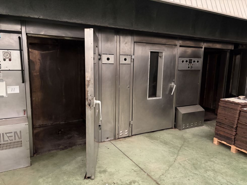 | Detalles | Se subasta maquinaria para la fabricación de galletas y productos de panadería y pastelería de larga duración. Maquinaria: Línea completa de Cruasán y Hojaldre (Napolitanas) (TRIVI, COMERCIAL INDUSTRIAL GARCÍA), Amasadora Doble (pesaje LAU PESTO), Amasadora (EMIL KEMPER GMBH), Cámaras de Conservación de Frío, Cámara doble de Congelación y Conservación, Cámara de Calor (SUBAL), Emboladora Pesadora (SUBAL), Emboladoras (IMC), Dosificadora Línea de Madalenas (IMC), Máquinas de Inyectar Chocolate (IMC), Hornos de Gas (DAHLEN), Horno Continuo (INAVAL), Sala de Fermentación, Caldera (ATTSU), Laminadoras (TRIVI), Trituradora de Mantequilla (TRIVI), Embolsadora (ATP/ULMA), Silos, Compresor (IMCOINSA), Calderín (SOGIMAIN), Secador (DRY ENERGY), Enfriador (SOGIMAIN), etc. Posibilidad de pujar por todos los lotes en lote único (lote nº 22) Depósito de 510EUR para participar en la Subasta. Realizar depósito mín. 48 horas antes de su finalización.