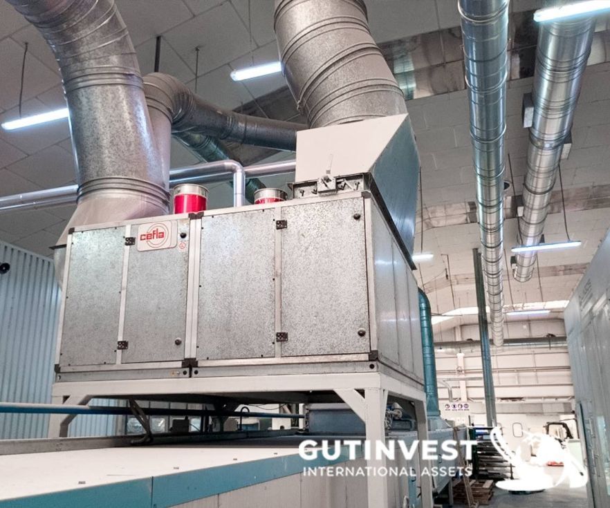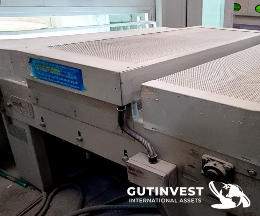 ObservacionesLinea de lacado - barnizado para madera Compuesta por: - Línea de lacado CEFLA. Mesa de banda entrada línea Cefla Modelo IN 2000 Año 1999 Nº de serie 91034/2 1 - Cepillo SORBINI Modelo VS/33-ACT-F AÑO 1999 Nº de serie MP1SC099150 - Transfer con lámpara de precalentamiento CEFLA Modelo: ES 7.5 Año: 1999 Nº de serie: 91034/2 3 - Robot línea barnizado CEFLA Modelo: Línea barnizado Año: 1999 Nº de serie: 91034 - Cabina presurizada LAGOS para robot Modelo: LAGOS Año: 2020 Nº de serie: 19/190-B - Túnel evaporación con lámparas tl CEFLA Modelo: FFU AL D/7-TT21000 Año: 1999 Nº de serie: 91034/2.5 - Túnel evaporación con lámparas tl CEFLA Modelo: FFU AL D/7-TT12000 Año: 1999 Nº de serie: 91034/2.6 - Transfer con lámpara de secado CEFLA Modelo: TLF-MB3-R-TTE3850-SCR Año: 1999 Nº de serie: 91034/2.7 - GTTA para túnel de evaporación CEFLA Modelo: GTTA 28 Año: 1999 Nº de serie: 03097/2.8 - Lijadora Quick Wood System Modelo: C2/1300 Año: 2003 Nº de serie: 8279 |