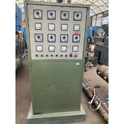 | Detalles | Extrusora 1 husillo - Marca: Amut - Motor de velocidad variable Elektra Faurndau: 7–24 kW (10–33 CV) - Con cuadro eléctrico - Cabezal de hilos para granza: 23 agujeros |