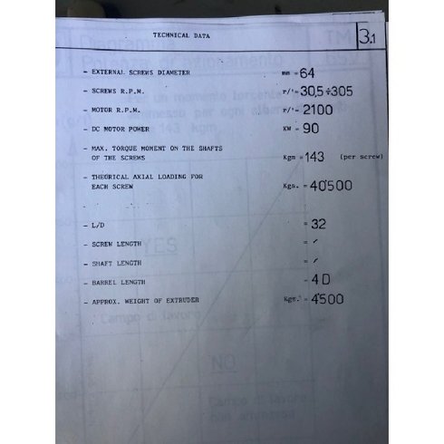 | Detalles | Extrusora 2 husillos - Husillos corrotantes - Marca: Maris - Camisa y husillo segmentados y compatibles por secciones - Con desgasificador - Velocidad variable - Cabezal de hilos - Incluye 2 husillos de repuesto |
