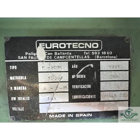 | Detalles | Linea de granceado (peletizado) Línea de granceado (peletizado) Eurotecno - Extrusora de un husilloEsta línea de granceado (peletizado) de la marca Eurotecno está diseñada para el reciclaje y la transformación eficiente de materiales plásticos, garantizando un proceso continuo y una excelente homogeneidad en la producción de granza. Características técnicas