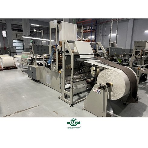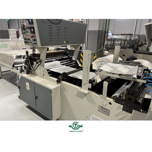 | Detalles | Máquina para fabricación de bolsa - Tipo camiseta, - Marca: Coemter, - Modelo: TER-851N, - Año: 1981, - Ancho de trabajo: 850 mm. - Para dos pistas. - Se puede montar bobina hasta 1,10 m. |