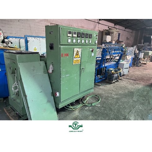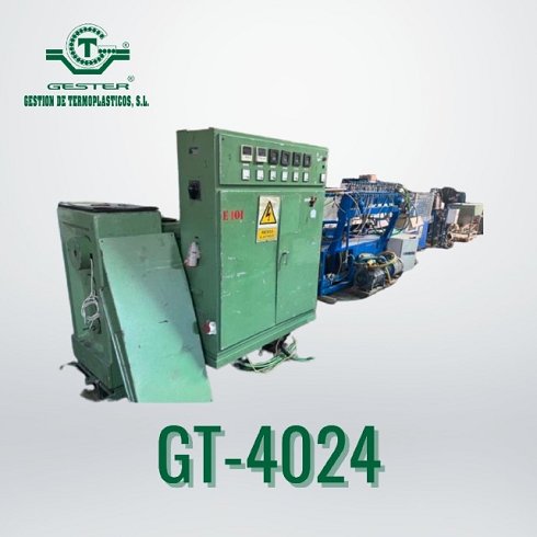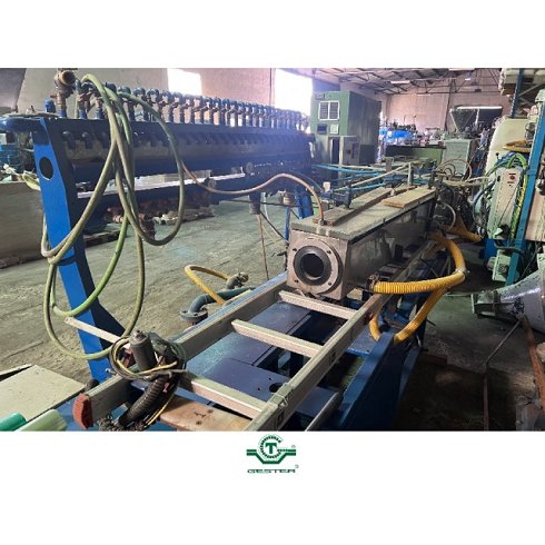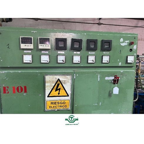 | Detalles | Línea de extrusión para fabricación de protector forestal (80 mm) - Compuesta de: a. Extrusora de 1 husillo: marca Covex, 60 mm Ø, 25 L/D, motor 22 kW (30 CV), con variador de velocidad y cuadro eléctrico b. Bañera de enfriamiento en inoxidable: 2 m, con bomba de vacío de 11 kW (15 CV) c. Troqueladora y cizalla con grupo hidráulico: motor 4 kW (5,5 CV), depósito de 75 litros |