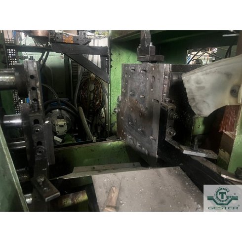 | Detalles | Sopladora Marca: Maquiplast, con extrusora 1 husillo: 80 mm Ø 20 L/D, motor: 30 KW (40 CV) corriente alterna y variador de velocidad, cambiador de filtros hidraulico: 80 mm, cabezal simple para hacer botellas hasta 5 L., cuadro eléctrico con autómata. Carro hidráulico: 15 KW (20 CV) con medidas soporte molde: 400x400x400 mm apertura. |